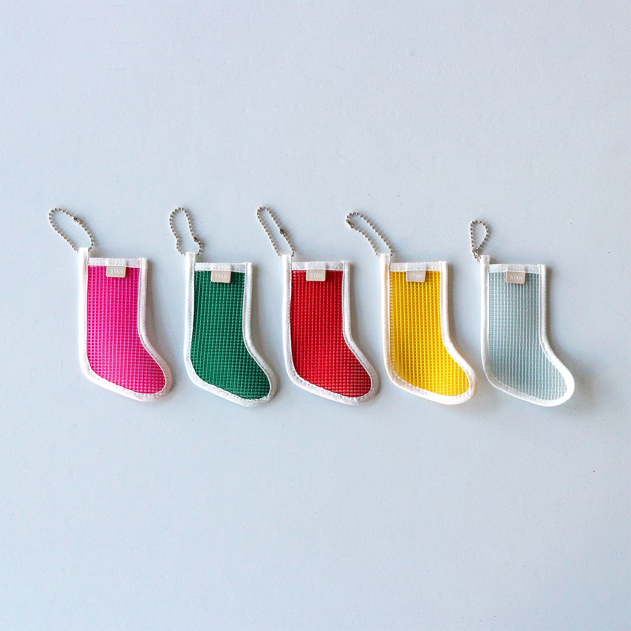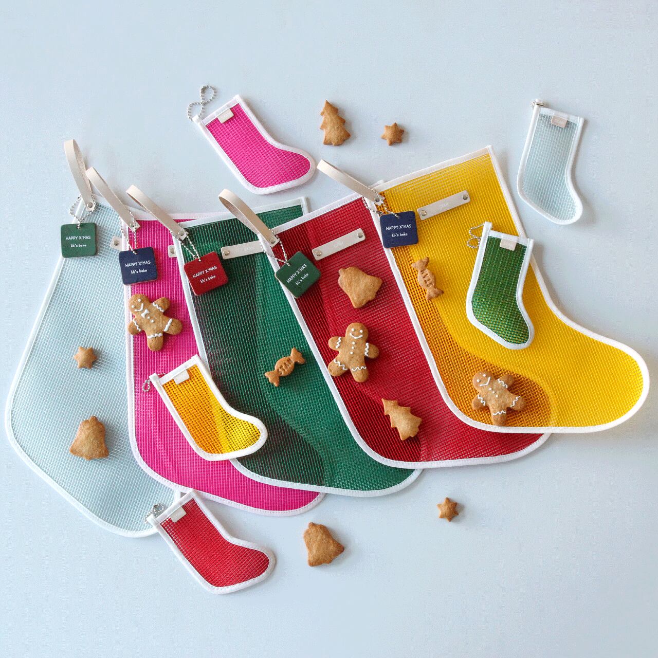 クリスマスソックスはカラフルなメッシュ素材。