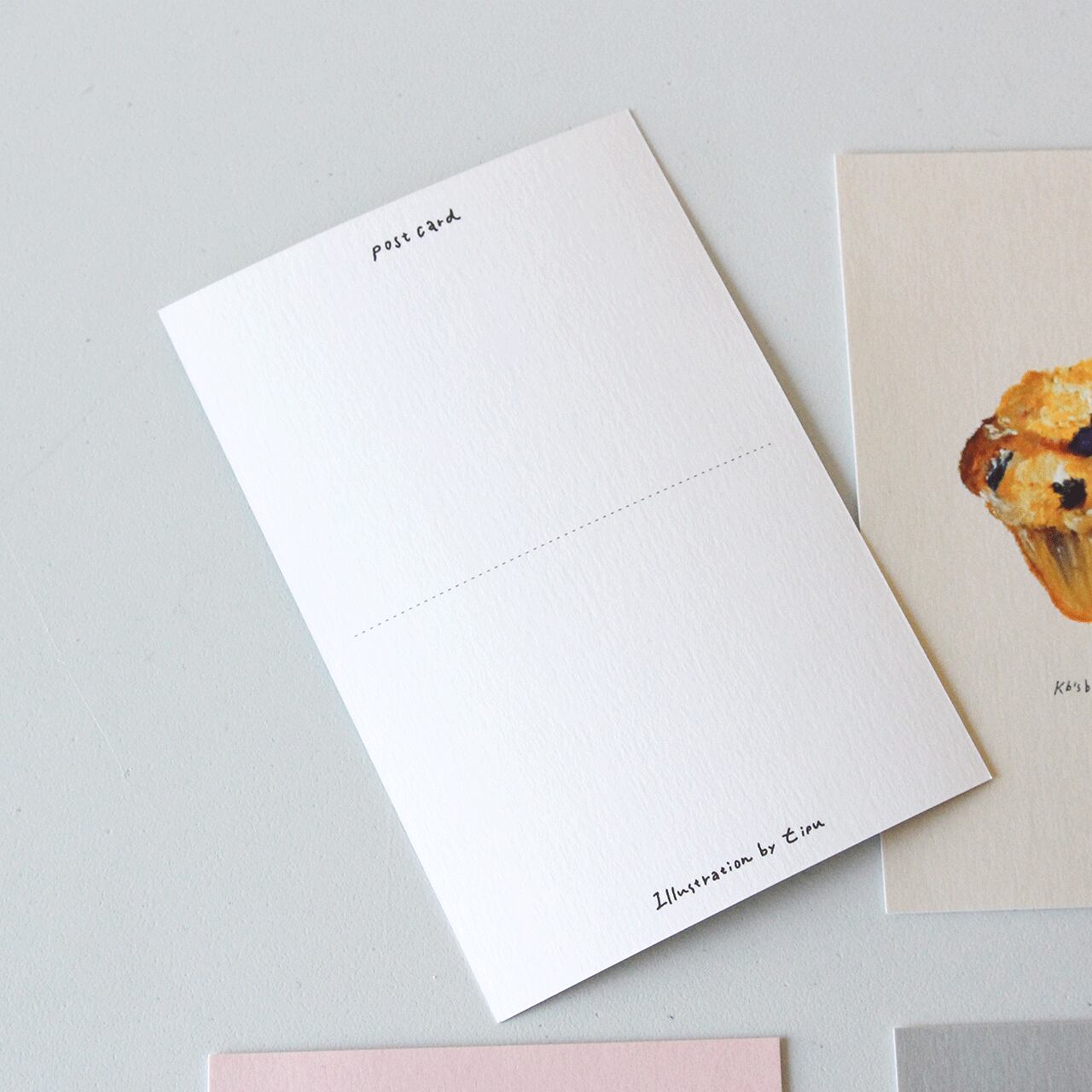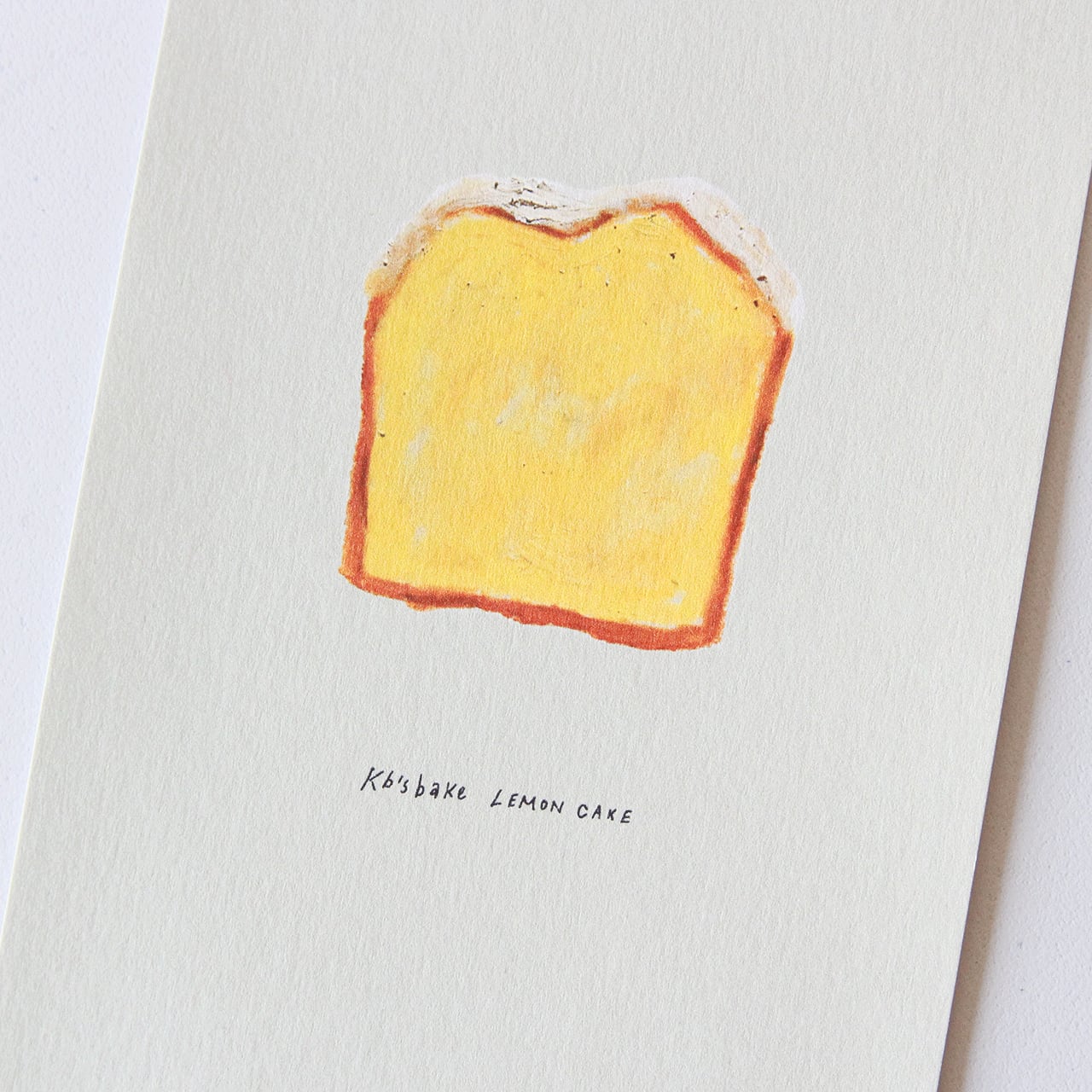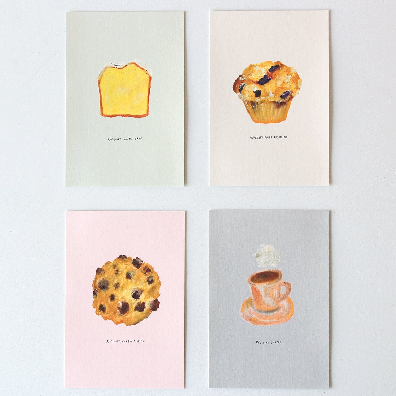 kb’s bake で人気のお菓子やコーヒーが描かれたポストカードです。
